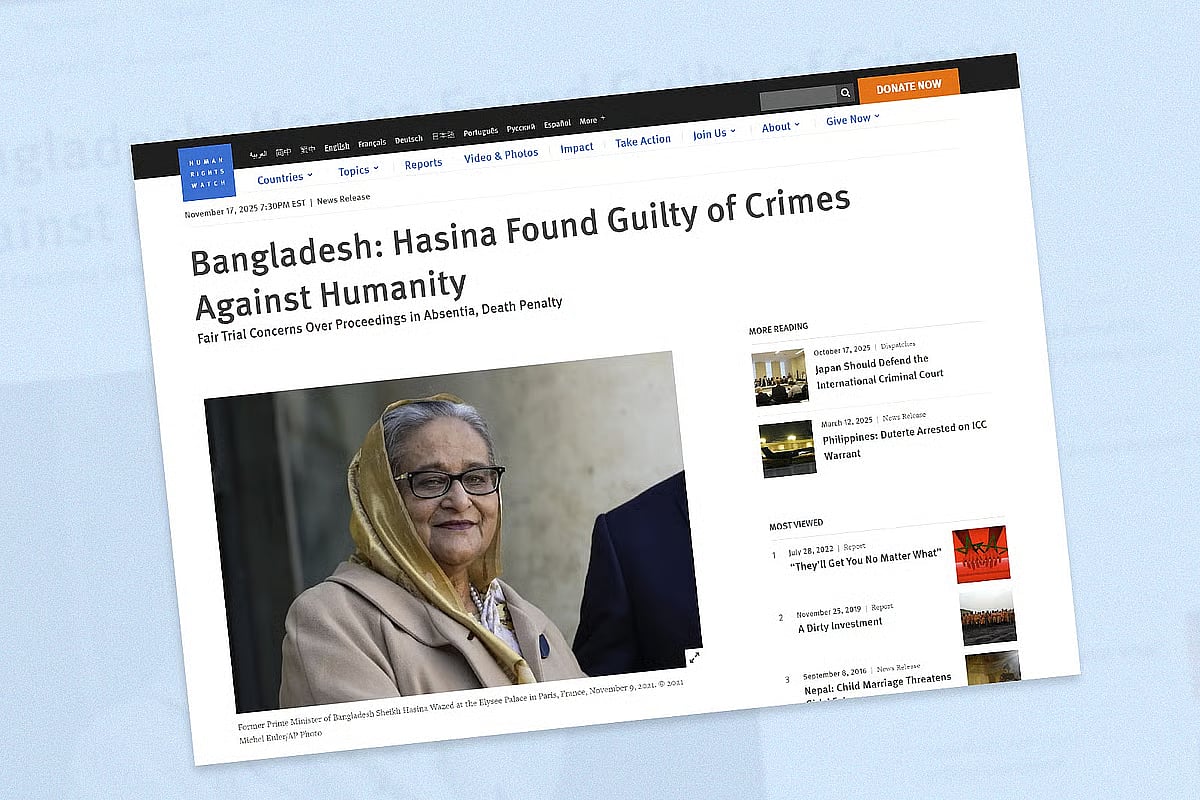 Human Rights Watch (HRW) has raised serious concerns over the fairness of the trial in which Bangladesh’s International Crimes Tribunal (ICT) found former prime minister Sheikh Hasina and former home minister Asaduzzaman Khan Kamal guilty of crimes against humanity.