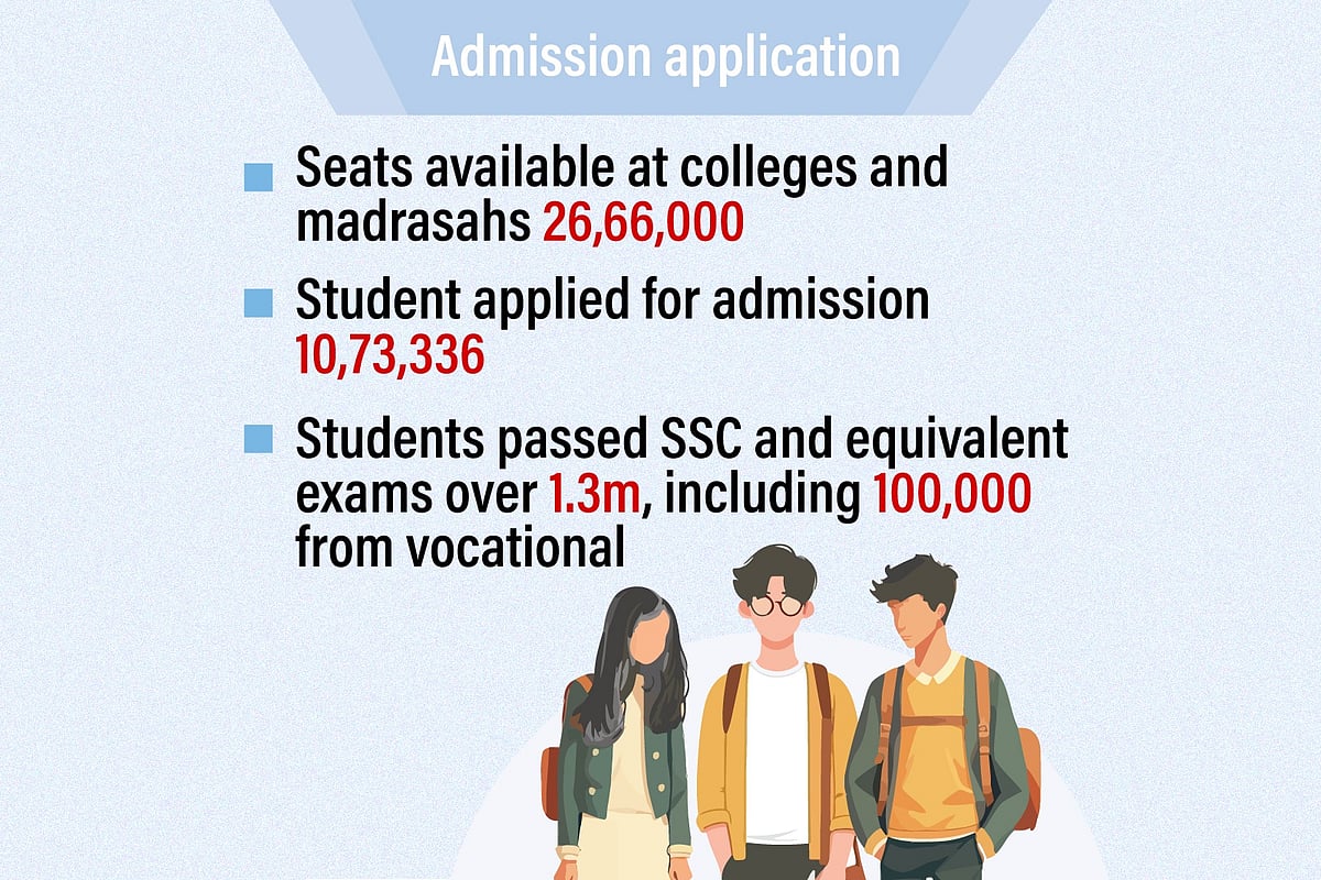 In the upcoming academic year, nearly 1.1 million students have applied for admission to the 11th grade in colleges and madrasahs. However, more than 1.3 million students have passed this year’s SSC and equivalent examinations.