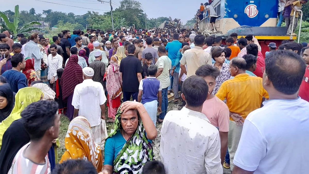 Locals said the cargo train was heading towards Chattogram from Dhaka and the passenger train—Egarosindur Paribahan--was going to Dhaka from Bhairab. The cargo train hit the last two bogies of the passenger train. Locals rushed to the rescue of the injured.