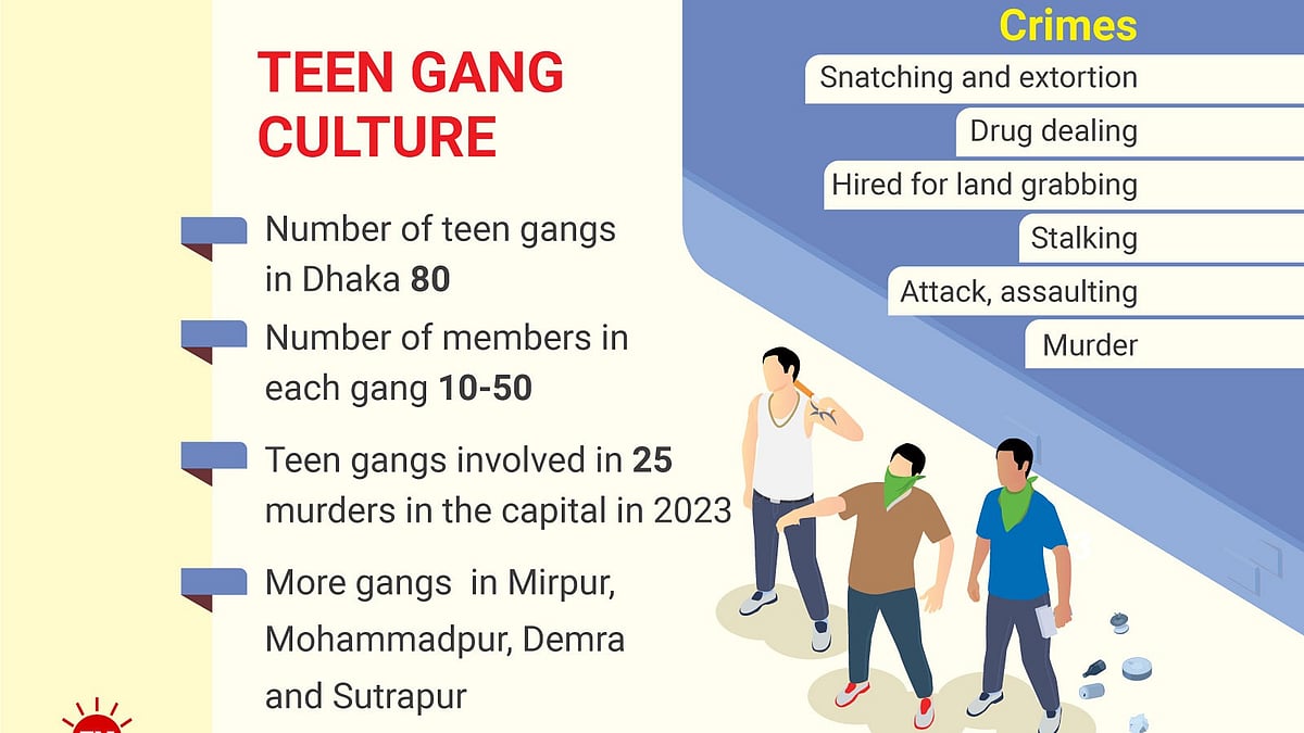 According to the report, there are 66 teen gangs operating in the capital and 57 in Chattogram city. Outside of Dhaka city, there are 24 teen gangs. Each gang consists of 10-50 members.