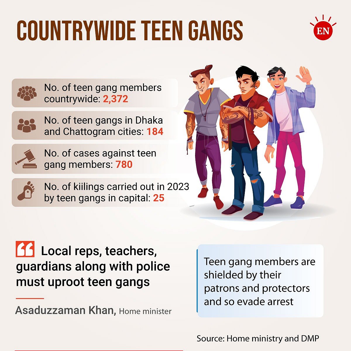 Certain information from police investigations was used in the Prothom Alo report. It was said, towards the end of 2022 Dhaka Metropolitan Police (DMP) had prepared a report on teen gangs. The report stated that there were at least 176 teen gangs around the country. There were 66 in the capital and 57 in Chattogram.