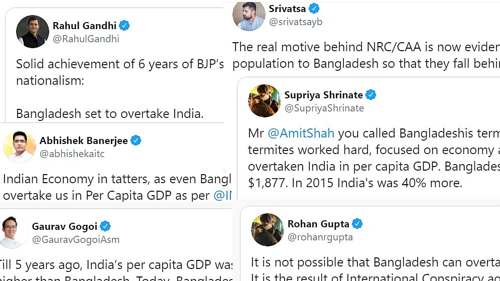 In another tweet, Abhishek Banerjee, Member of Parliament (Lok Sabha) and National president of All India Trinamool Youth Congress, said, “Indian Economy in tatters, as even Bangladesh is set to overtake us in Per Capita GDP as per @IMFNews's World Economic Outlook. Listen carefully, it's not their resurgence, but our colossal downfall, in pursuit of @narendramodi. Ji's 5 Trillion dream!”