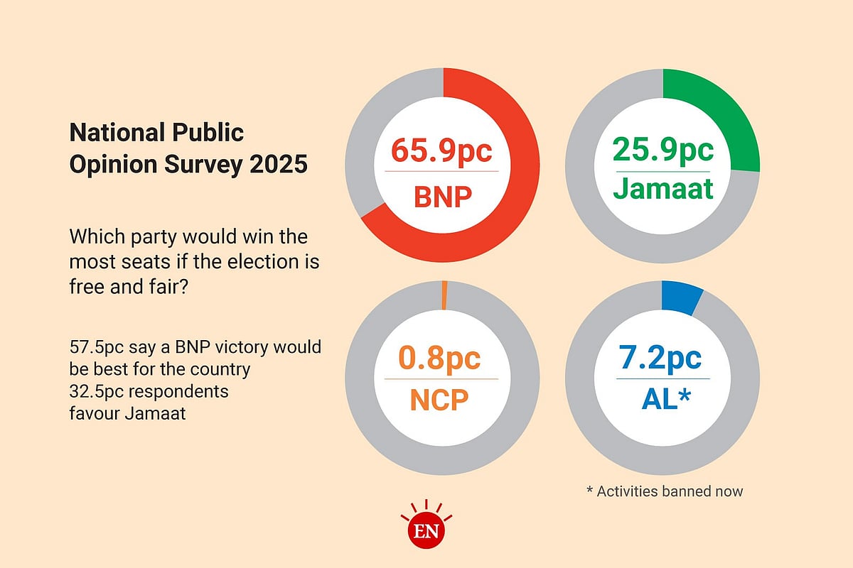 In response to the same question, slightly over 7 per cent said the Awami League—whose activities are currently banned. Another 0.8 per cent named the National Citizen Party (NCP), the youth-led party that played a key role in the July mass uprising. 0.1 per cent expressed support for Islami Andolan Bangladesh.