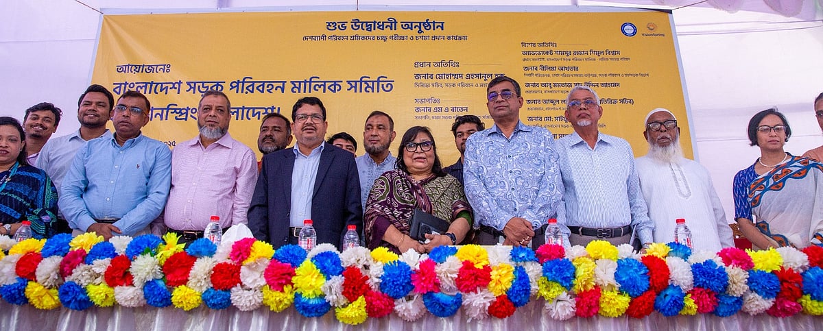 Dignitaries present at the launch included: Adv. Shamsur Rahman Shimul Biswas, Chief Coordinator, Bangladesh Road Transport Owners–Workers Coordination Council; Nilima Akhter, Executive Director, DTCA; Abu Momtaz Saad Uddin Ahmed, Chairman, BRTA; Abdul Latif Molla (Additional Secretary), Chairman, BRTC; Md Saiful Alam, Secretary General, Bangladesh Road Transport Owners’ Association; Misha Mahjabeen, Country Director, VisionSpring; Abdur Rahim Box Dudu, President, Bangladesh Road Transport Workers’ Federation; and Humayun Kabir Khan, General Secretary, Bangladesh Road Transport Workers’ Federation.