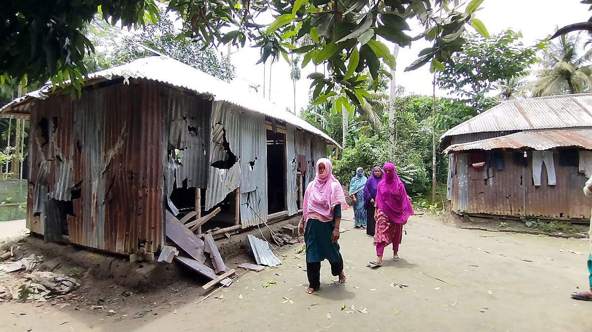 Nurjahan Begum, wife of Ahid Sheikh, reported that household belongings such as furniture, electric meters, fans, stored paddy and rice were destroyed. "They also cut down various fruit trees including guava and mango from our yard and the surrounding areas," she said.