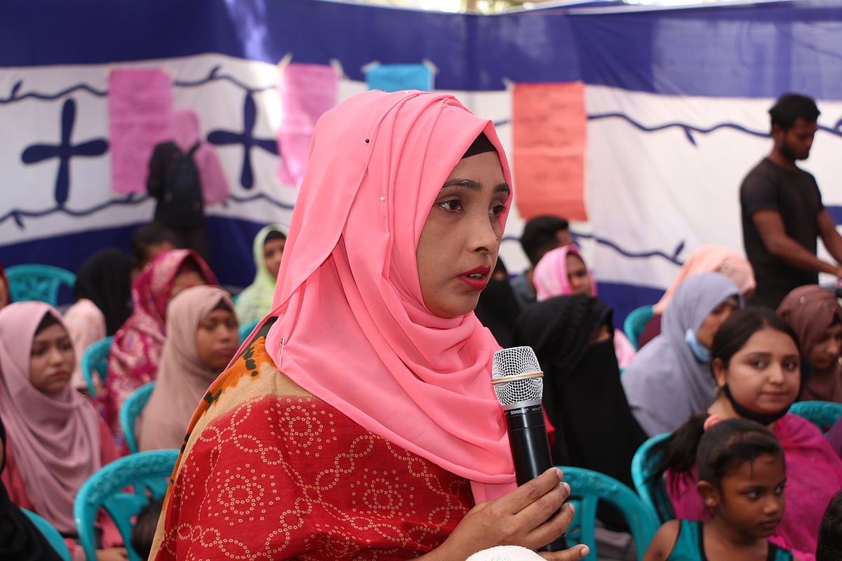 These women and girls had come to attend a meeting arranged by ActionAid Bangladesh on 28 November at the Sher-e-Bangla Ideal Institute in Nandipara. They directly confronted the local people's representatives and government officials at this 'Service Provider Organisations and Public Hearing Meeting 2022'. The women and girls voiced their grievances over not getting free government services, having to pay extra costs for certain services and other problems of the area.