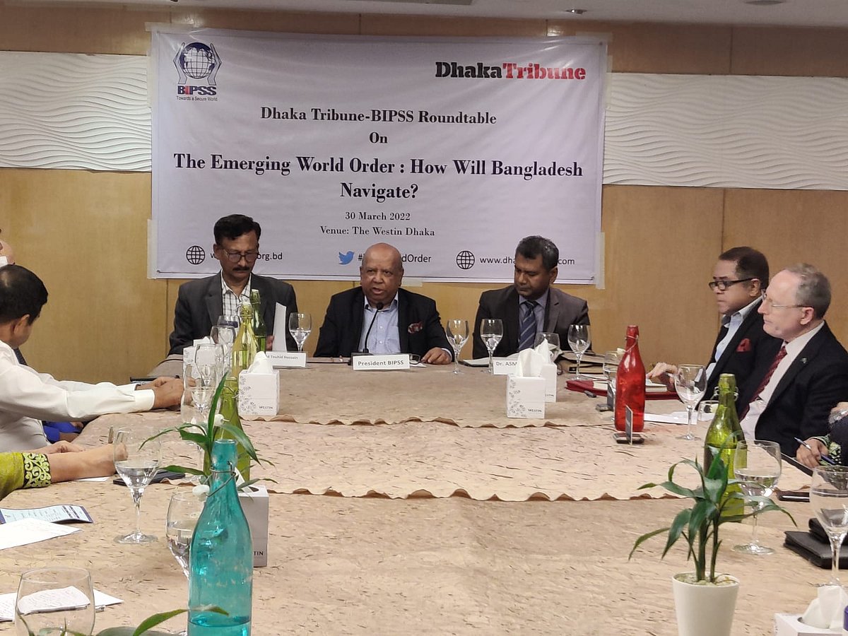Discussants brought up these issues at a roundtable organised jointly by BIPSS and Dhaka Tribune at a local hotel in the capital city on Wednesday. Titled ‘The Emerging World Order: How Will Bangladesh Negotiate’, the event was addressed by former foreign secretary Md Touhid Hossain and professor of international relations at Dhaka University, ASM Ali Ashraf and moderated by president of Bangladesh Institute of Peace and Security Studies (BIPSS) Major General ANM Muniruzzaman (retd).