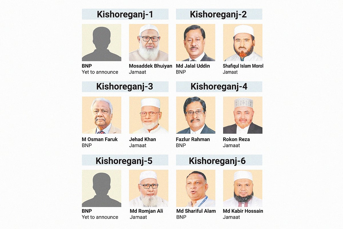 The BNP has not yet announced candidates for two of Kishoreganj’s six parliamentary constituencies. As a result, at least 16 nomination seekers are actively campaigning in the unofficially open Kishoreganj-1 and Kishoreganj-5 seats.