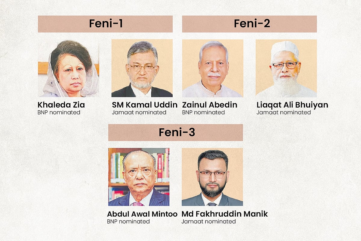 Bangladesh Nationalist Party (BNP), Jamaat-e-Islami, Islami Andolan Bangladesh, Bangladesh Khelafat Majlis, and JSD (Rob) have nominated candidates in all three parliamentary constituencies of Feni. AB Party has fielded a candidate in one constituency. However, in Feni-1, one of the three constituencies, the BNP’s candidate, the party chairperson Khaleda Zia, is currently hospitalised in critical condition. Her illness has also affected the BNP’s election campaign.
