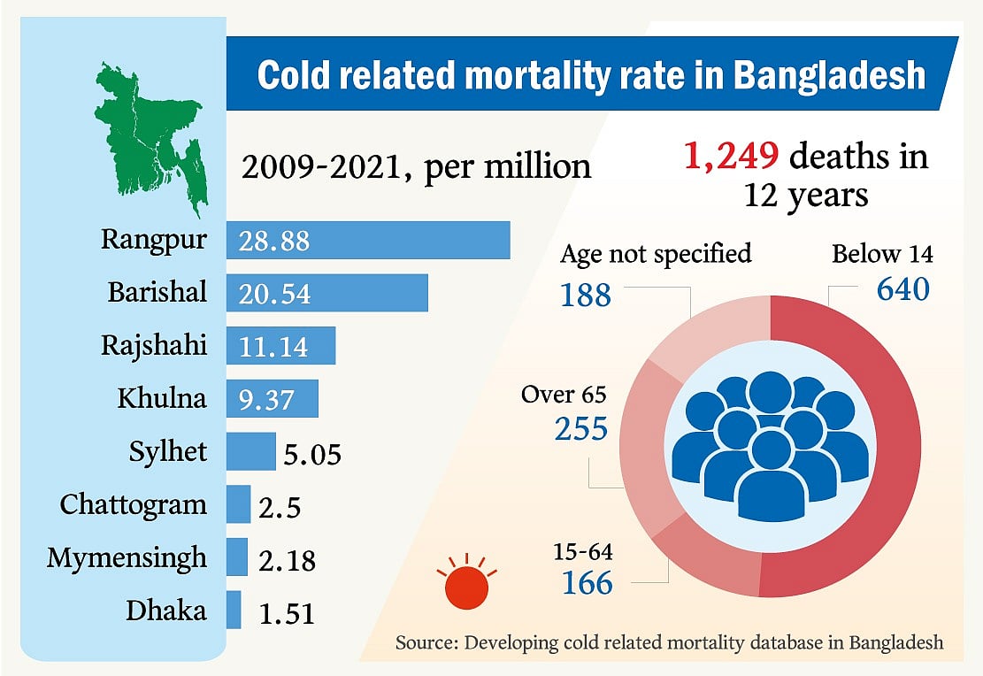 Some 104 people die on average every year in Bangladesh due to cold and winter-related diseases. The number of deaths are higher in parts of the country with longer winters and higher poverty rates.