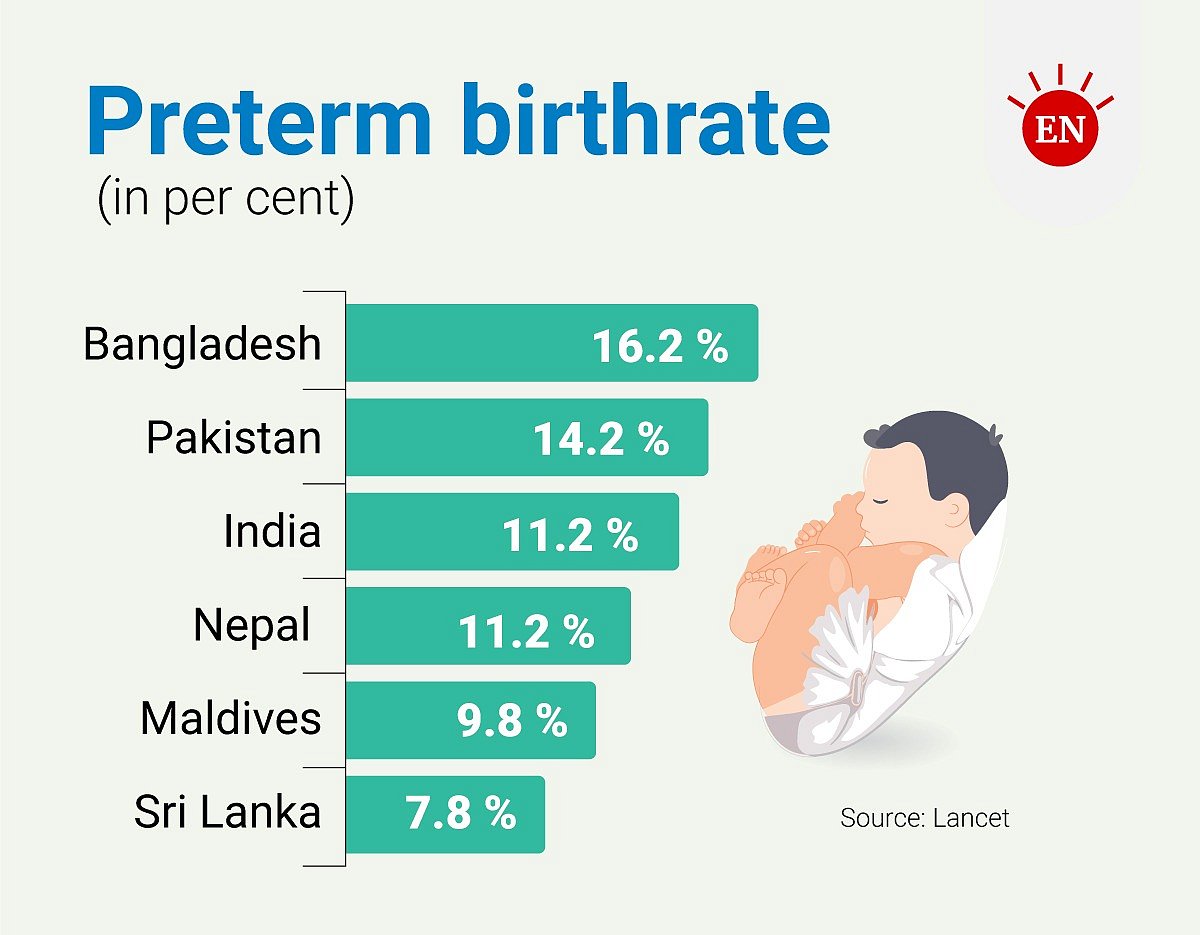 The birthrate of such children in Bangladesh is higher than that of the average global rate of 10 per cent. Preterm birthrate in India is 13 per cent, in Pakistan it is 14.4 per cent, in Nepal 11.2 per cent, in Maldives 9.8 per cent and for Sri Lanka the rate is 7.8 per cent.