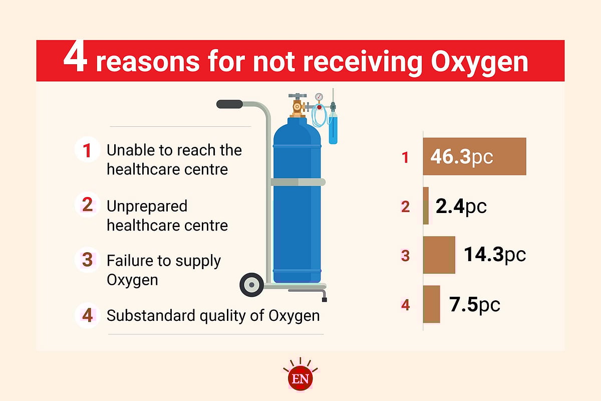 Data show that 46.3 per cent of people cannot reach a hospital or clinic when oxygen is required or live too far away; 2.4 per cent find the facility unprepared; 14.3 per cent experience shortages in oxygen supply; and 7.5 per cent do not receive oxygen of acceptable quality.