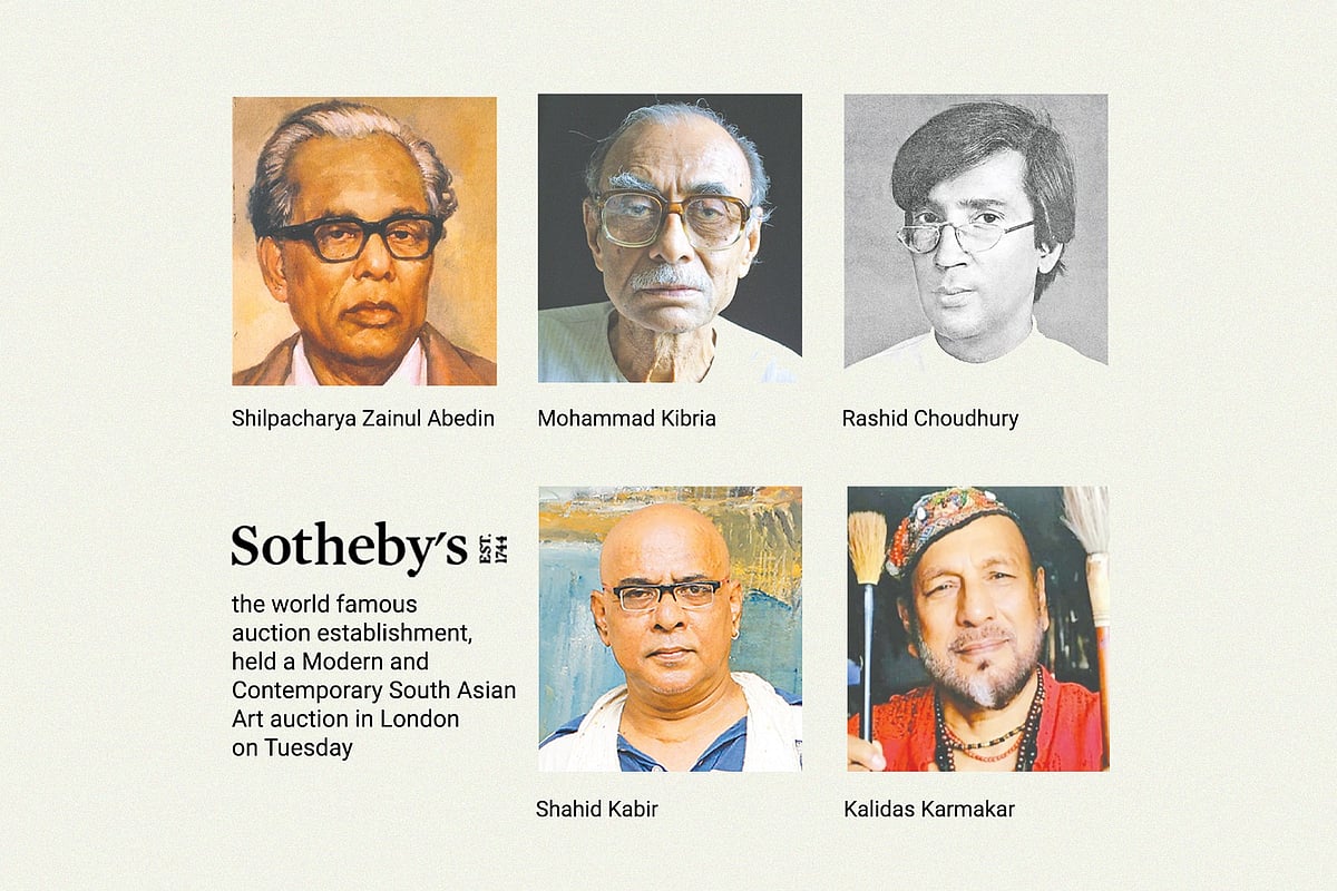 Seven works by Bangladeshi masters Zainul Abedin, Shahid Kabir, Mohammad Kibria, Rashid Choudhury and Kalidas Karmakar were sold in the auction. Among these, paintings by Shahid Kabir and Kalidas Karmakar appeared at a Sotheby’s auction for the first time.