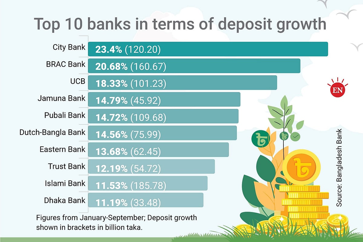 According to data from Bangladesh Bank, private sector banks such as City Bank and BRAC Bank achieved deposit growth of over 20 per cent during the first nine months of the year.