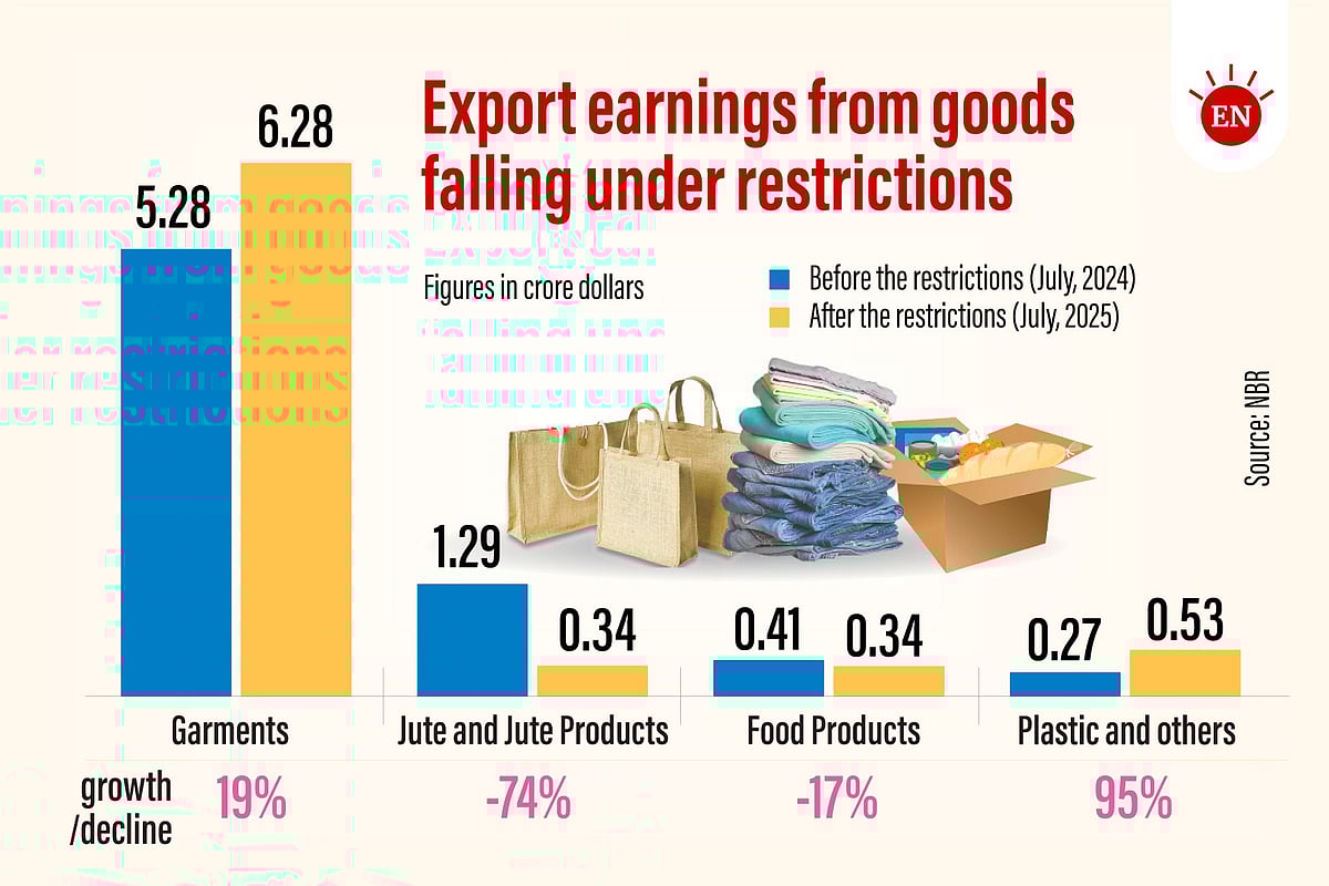 According to NBR data, before the restrictions, Bangladesh exported jute goods worth USD 12.9 million (USD 1.29 crore) to India in July last year. That figure has now fallen by 74 per cent to exports worth around USD 3.4 million (USD 34 lakh).