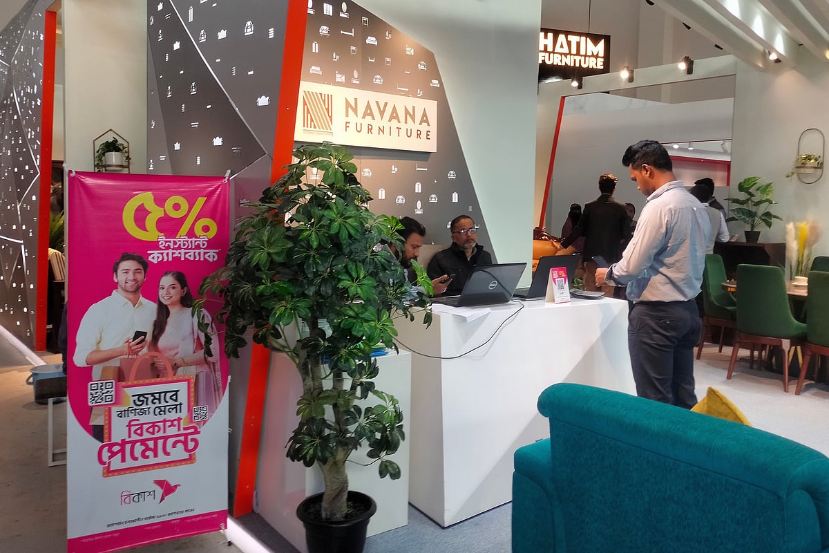 Anwar bought some utensils from a reputed brand shop. “On the occasion of the trade fair, the shop gave 10 percent discount, and I got an additional 5 percent instant cashback by making payment through bKash. Coming this far from the capital pays off for me,” he said, smiling.