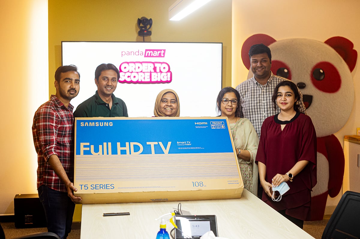 As part of the campaign, a smart television was handed over to the first week’s winner, Fahmida Walliah recently at foodpanda Bangladesh head office. She is a homemaker and a regular customer of pandamart. Fahmida finds it very convenient to order from pandamart on a daily basis. The prize was handed over by Delara Farooq, head of category managements, foodpanda Bangladesh; Mohammad Tabrej Khan, head of logistics, foodpanda Bangladesh and Abid Mahmood, head of marketing-new verticals, foodpanda Bangladesh.