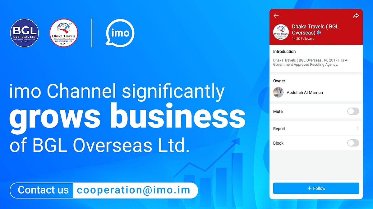 BGL Overseas, a government-approved recruiting agency based in Dhaka, registered remarkable growth after joining ‘Channel’, a free broadcast platform for service and information introduced by popular instant messaging app imo, said a press release.