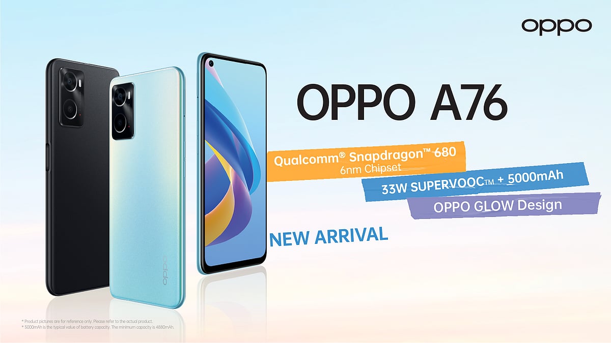 Powered by ColorOS 11.1 based on Android 11, the device ensures enhanced productivity, entertainment and an immersive smartphone experience. With the Qualcomm Snapdragon 680 4G Mobile Platform, users can expect a lag-free scrolling-and-swiping on the A76.