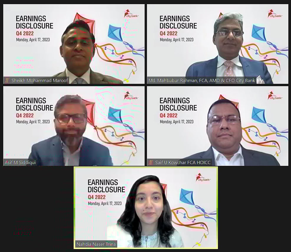City Bank held its Earnings Disclosure event over digital platform announcing its Q4, 2022 financial performance. The event was held on 17 April 2023 at 3:00 PM over the digital platform. Existing and potential investors across the globe, researchers and analysts and many other individuals involved in capital market activities joined the event.