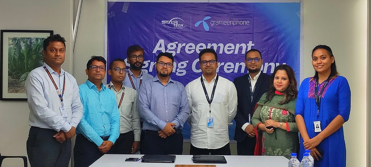 The agreement was signed at the Star Tech Head Office in Bangla Motor. Sabbir Ahmed, Head of Marketing, Premium Segment, Grameenphone; and Mazharul Alam, Managing Director, Star Tech, signed the deal on behalf of their respective organizations.