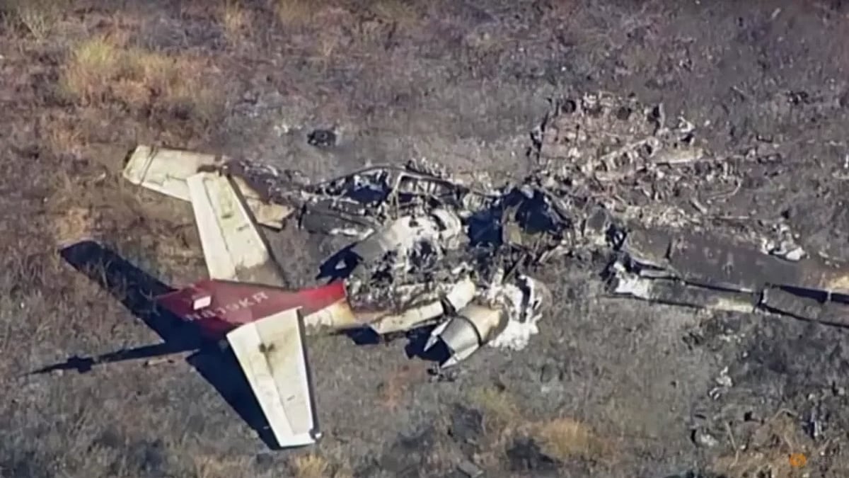 Aerial video from local media showed burnt rubble in the shape of a small aircraft in a blackened part of a field across the road from the airfield.