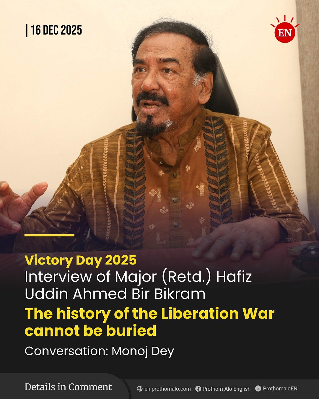 Major (Retd.) Hafiz Uddin Ahmed received the Bir Bikram title for his heroic contribution in the Liberation War. He is a member of the BNP’s standing committee. He spoke to Prothom Alo about various aspects of the Liberation War. The interview was conducted by Manoj Dey.