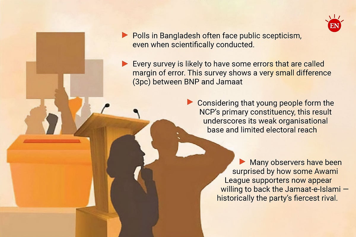 Polls in Bangladesh often face public scepticism, even when scientifically conducted. Many argue that a few thousand respondents cannot represent the complexity of Bangladesh’s population, or that citizens are reluctant to reveal their true political preferences to strangers.