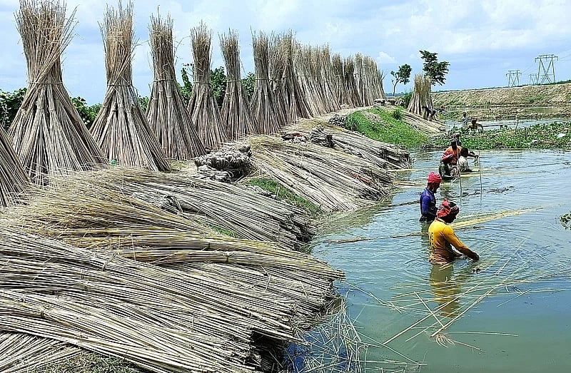 Farmers busy in retting jute fiber from the stems immersed in water. Photo taken in Santhia upazila of Pabna on 28 July. There is less vehicular movement on the streets of Dhaka centering counter rallies of Awami League and BNP. This has caused troubles for commuters. A family waits for a vehicle to board at Signboard area on the Dhaka-Chattogram road in Narayanganj on 28 July. A scene of the play titled, ‘Narake Laal Golap’, staged by Bangladesh Shilpakala Academy and District Shilpakala Academy. Photo taken from Cumilla Shilpakala Academy on 27 July.