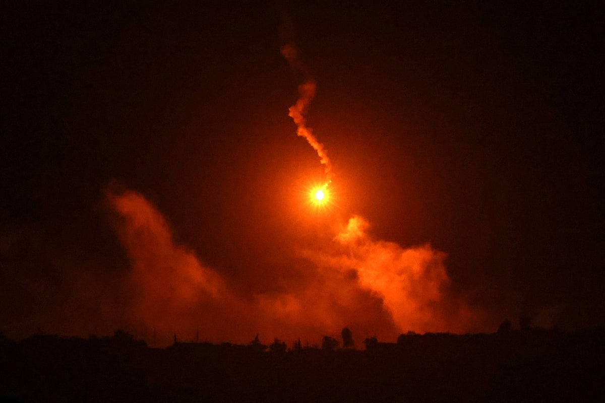 A boy stands in the rain at a school run by the United Nations Relief and Works Agency for Palestine Refugees in the Near East (UNRWA) in Rafah in the southern Gaza Strip on 14 November, 2023, where internally displaced Palestinians have taken refuge amid ongoing battles between Israel and the Palestinian militant group Hamas.A Ukrainian soldier walks through water during a training exercises with French soldiers at a French military camp in France in November 2023.The Golden Gate Bridge in San Francisco, California, on 12 November, 2023.Aerial view showing a forest fire raging at the Encontro das Aguas Park by the Sao Lourenco River in the Pantanal wetland, near Pocone, Mato Grosso State, Brazil, on 12 November, 2023.A man walks amid maple trees at Nishat Garden in Srinagar on 13 November, 2023.This picture taken from the Israeli side of the border with Gaza shows flares being fired over the Gaza Strip on 13 November, 2023, amid continuing battles between Israel and the Palestinian militant group Hamas. Aerial view of crop plantations at a farm in Saladillo, Buenos Aires Province, Argentina, on 9 November, 2023.