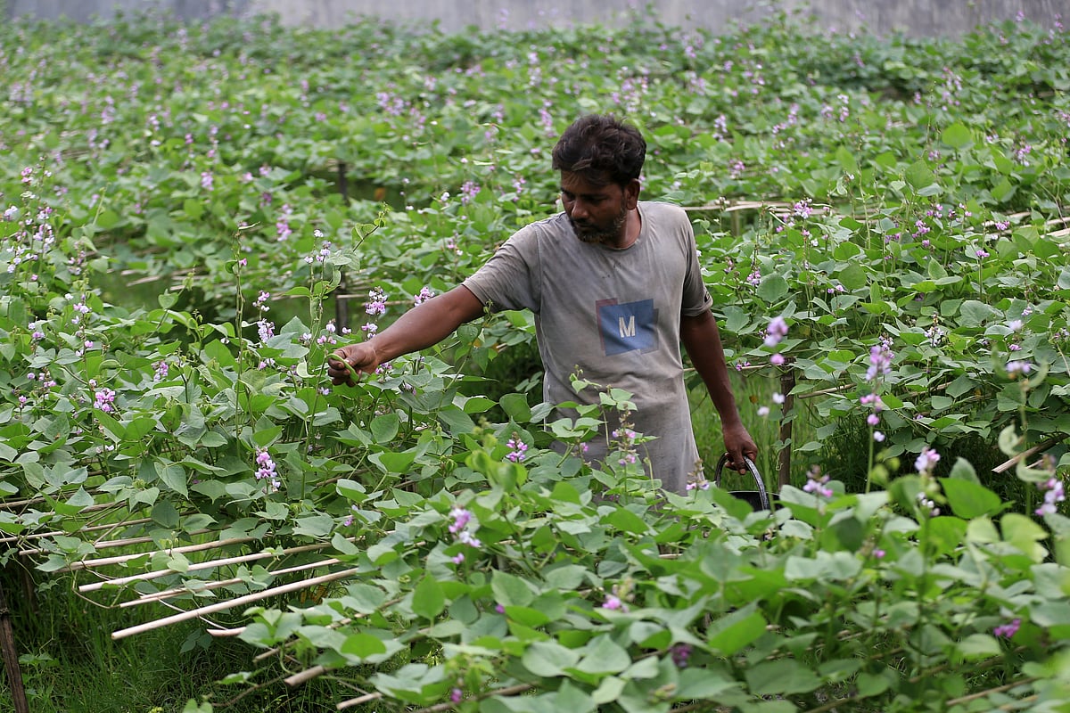 Householders bringing cow's milk to sell at the local morning market. The picture was taken from Pukhuria of Bhanga in Faridpur on 10 September.Although a winter crop, early varieties of hyacinth beans are now widely cultivated. A farmer is harvesting beans for sale. The picture was taken from Tebunia of Pabna on 10 September.