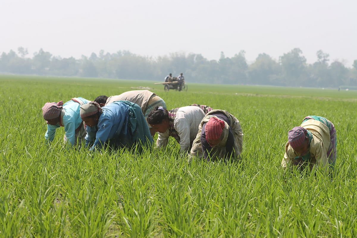 Irrigation pump is being taken from one filed to another for irrigation in the Boro field. The picture was taken from Chilarjhar in Rangpur on 9 March. A group of women is weeding a Boro field. The picture was taken from Chilarjar in Rangpur on 9 March.