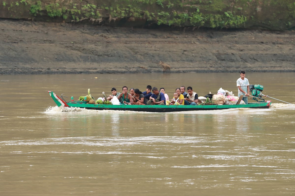 A common myna takes a bath in the waters of the Banar River. The picture was taken from Gosinga of Sreepur in Gazipur on 13 July. A farmer returns home along a narrow path after working in the fields. The picture was taken from Bonbheti of Shahjahanpur in Bogura on 13 July. People arrive at the weekly market in the district town by boat. The picture was taken from Madhyam Para in Bandarban on 13 July.