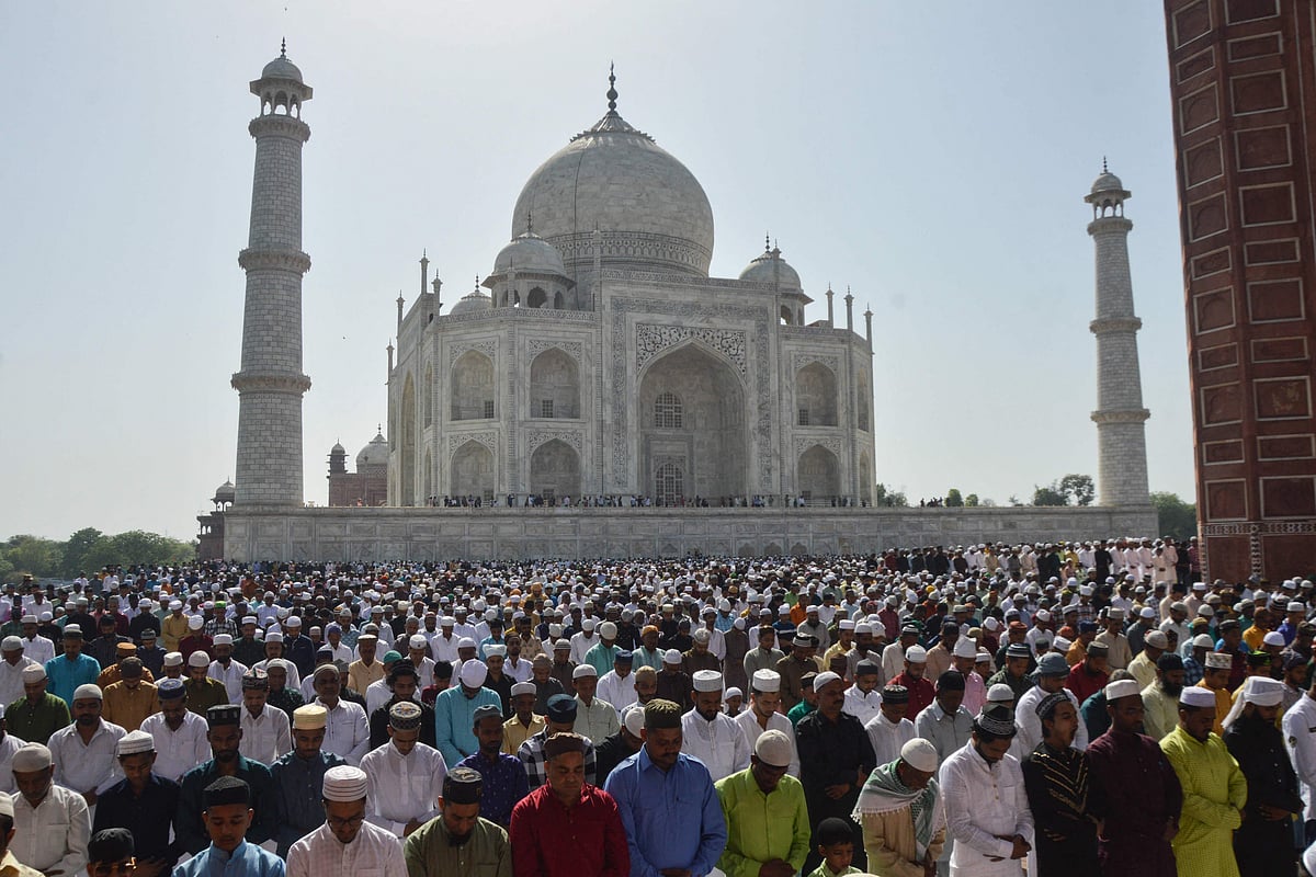 uslim devotees offer a special morning prayer to start the Eid al-Fitr festival, which marks the end of their holy fasting month of Ramadan, at the Jama Masjid mosque in the old quarters of New Delhi on April 22, 2023Muslim devotees offer special morning prayers to start the Eid al-Fitr festival, which marks the end of their holy fasting month of Ramadan, at the Taj Mahal in Agra on April 22, 2023.
