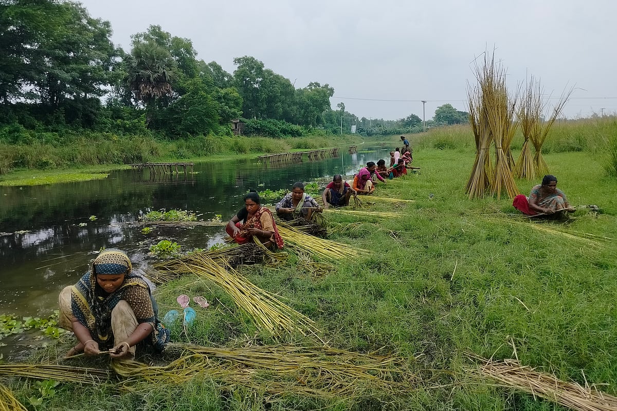 A group of women separates raw fiber from stalks. The picture was taken from Paturia at Ghior in Manikganj on 2 August. Traders carry their goods by trawler to the local market for sale. The picture was taken from Kazirbazar in Sylhet on 2 August.