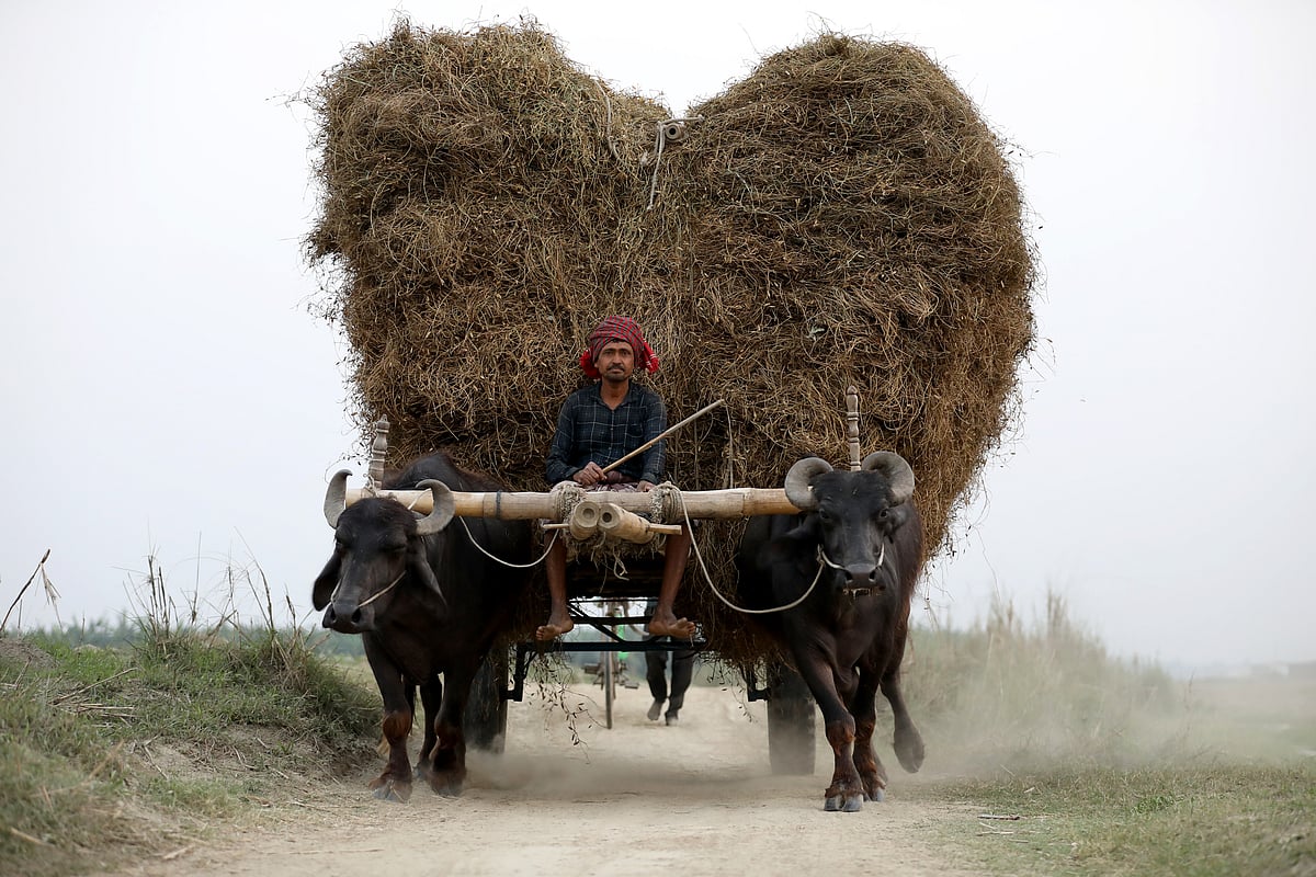 A farmer returns home taking harvested crops in a bullock cart. The picture was taken from Padma char in Dogachhi, Pabna on 29 March.