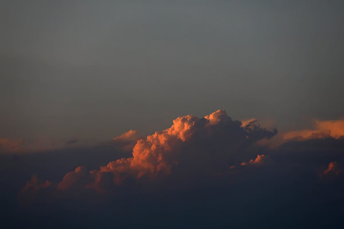 Sunlight breaking through dark clouds.Golden sunlight on the peaks of drifting clouds.Sun’s colourful glow on the swirling mound of clouds.Sunlight shining on the crests of clouds.
