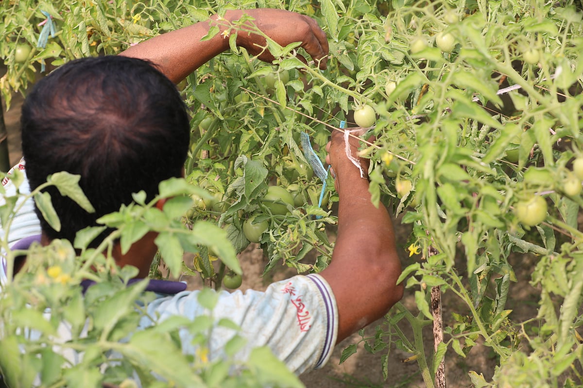 The sun is spreading its rays in the east. A fisherman is heading towards a beel (waterbody) to catch fish. The picture was taken from Patulipara of Bhangura in Pabna on 29 November. Farmer Rubel has cultivated tomatoes on seven decimals of land. He is tending the crop field. The picture was taken from Shanagar of Shahjahanpur in Bogura on 29 November.