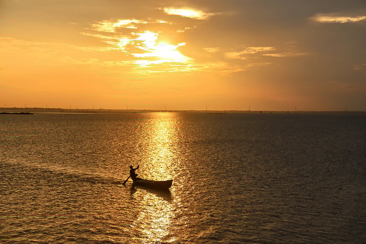 A fisherman rows his dinghy home through the middle of a haor at dusk. Photo taken from Boro Haor area in Karimganj of Kishoreganj on 23 July 2025.A flock of goose is busy feeding among the grasses on the edge of a haor while their reflections ripple in the clear water. Photo taken from Bauarkandi Haor in Sylhet Sadar on 24 July 2025.It had been raining in torrents since midnight. The downpour caused troubles for commuters in the morning. A three-wheeler transports people to their destination amid the heavy rain. Photo taken from Pabna-Ishwardi Highway in Tebunia area of Pabna on 24 July 2025.Polluted water from the Balu River and surrounding drains merges into the Shitalakkhya River. Photographed from the Sultana Kamal Bridge in Dhaka on 24 July 2025.