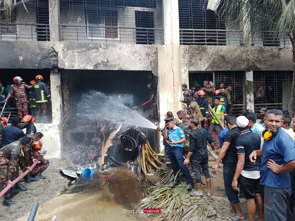 A training aircraft of the Bangladesh Air Force crashed into a building of Milestone School and College in Uttara, Dhaka, on Monday. The Fire Service has confirmed the death of at least one person in the incident. Rescue operations are currently underway at the scene. Sazid Hossain and Khaled Sarker took the photos.