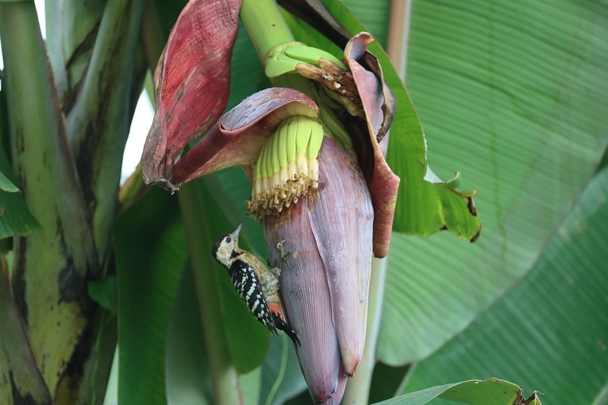 A woodpecker clings onto the flower of a banana tree. Photo taken from Chowdhurykhola area in Cumilla on 18 September. A farmer tends to his patch of snake gourd (chichinga). Photo taken from Jammura area in Cumilla on 18 September.