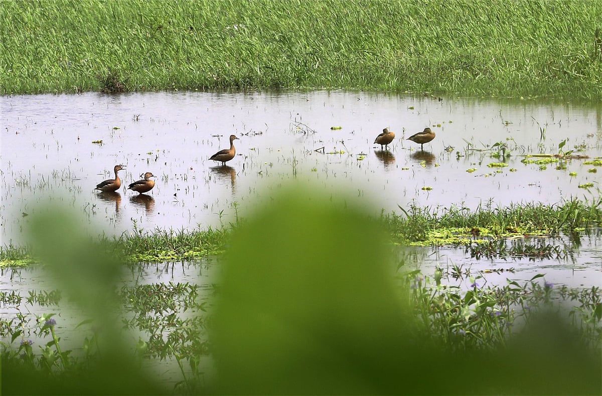 While spotted ducks are often seen frolicking in groups near flooded rice fields and wetlands during the day, they roam at night in search of food. The picture was taken from Jhajhor Beel of Sherpur in Bogura 2 August. Workers load jute, prepared for export, onto a truck from the warehouse. The picture was taken from Daulatpur of Khulna 2 August. A woman leads goats to graze along a rural path. The picture was taken from Magura Tair of Sherpur in Bogura 2 August. Soyel Rana Children catch fish from cultivated fields. The picture was taken from Harati of Rangpur on 2 August.