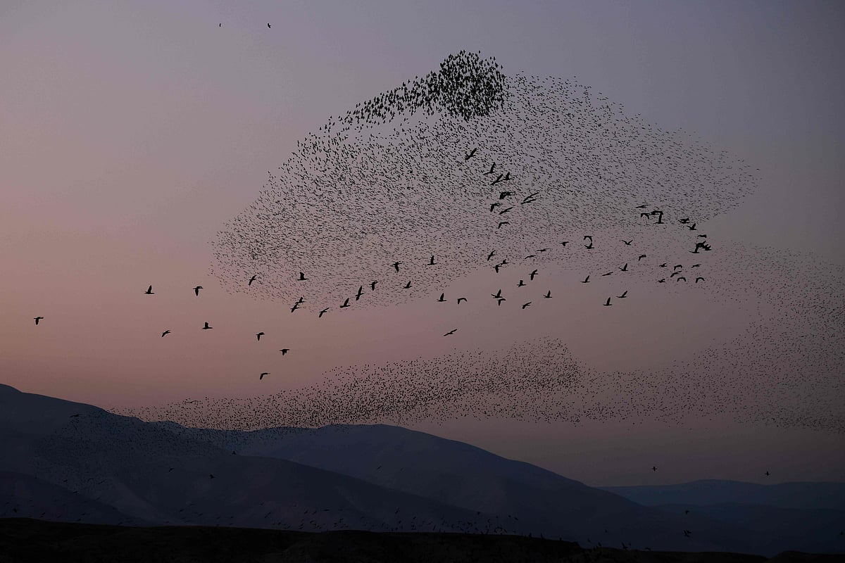 A murmuration of starlings flock above the Jordan Valley in the West Bank before landing to sleep, along the border with Jordan, on 10 January, 2020A photo taken on 10 January, 2021 shows a general view of traffic passing over a bridge above the frozen Han river in Seoul