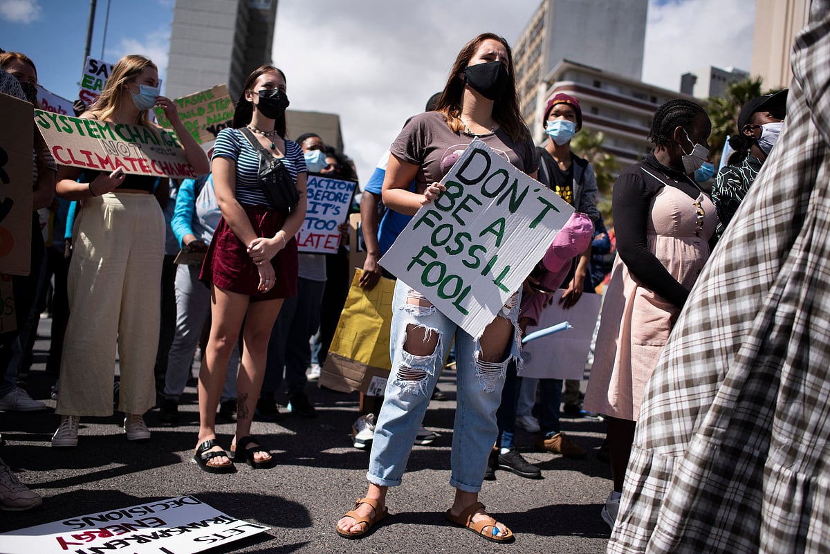 Hundreds of people take part in a Global Climate Strike protest on 24 September, 2021, in Cape Town, demonstrating against the causes of global climate change, and in particular, the South African Department of Mineral Resources and Energy (DMRE)