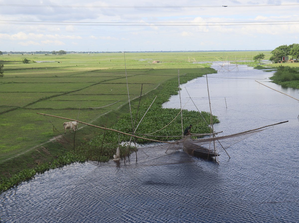 Water hyacinth flowers bloom in a flooded crop field after the rain. The picture was taken from Ranatitha at Raiganj of Sirajganj on 8 July. A man is busy fishing with a net in the middle of the river. The picture was taken from Suti River of Katiadi in Kishoreganj on 7 July. Health assistants in Sylhet stage a sit-in protest demanding six-point reforms including revision of recruitment policy, promotions, and elimination of pay disparities. It was organised by the Bangladesh Health Assistant Association, Sylhet District Branch. The photo was taken from in front of the Civil Surgeon’s Office in Sylhet on 8 July. A mango seed thrown into a bush has sprouted and is growing into a tree day by day. The picture was taken from Sabujbagh in Bogura on 8 July. A butterfly rests on a white wildflower while other insects hover nearby. The picture was taken from Camlong of Bandarban on 8 July.