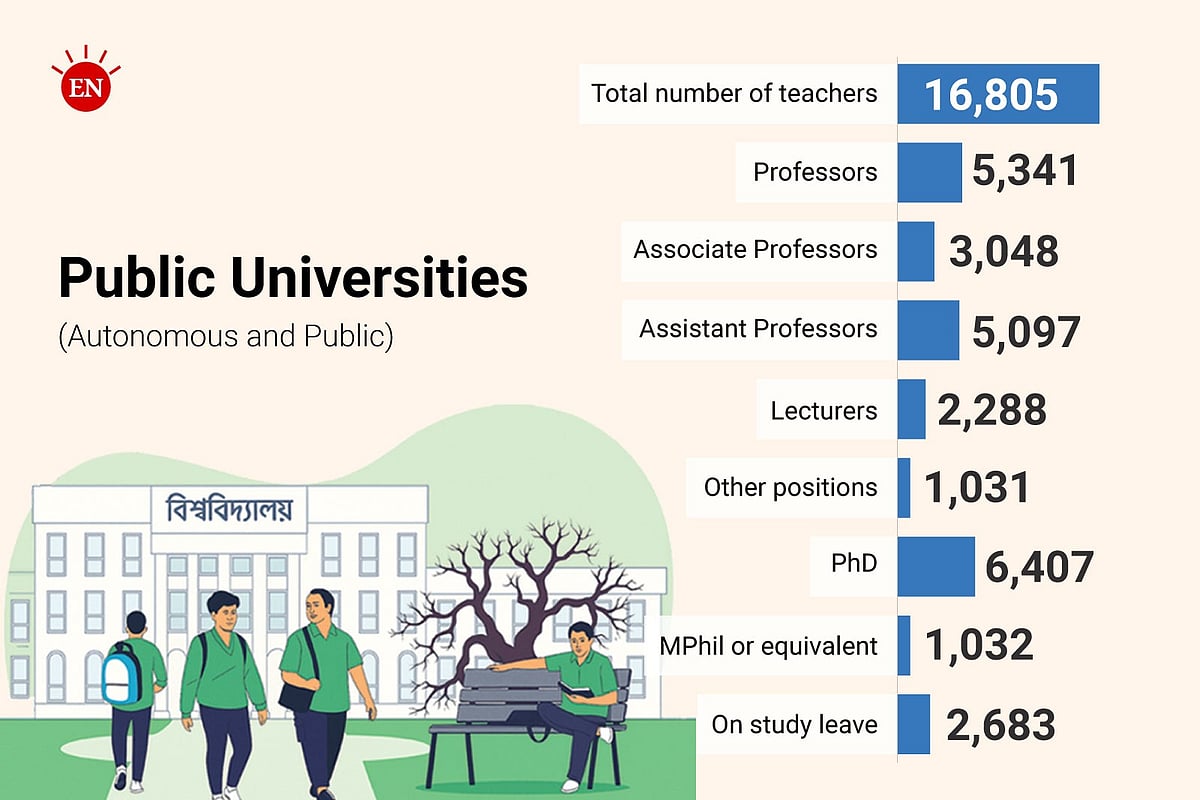 For promotions, universities place importance on having a PhD and publishing research work in reputed journals. Since 2023, the University of Dhaka has made a PhD mandatory for promotion to the positions of associate professor and professor. Experts note that in many countries, not only a PhD but also postdoctoral research is required for university teaching positions. Therefore, they argue that Bangladesh should at least make a PhD degree mandatory for recruitment at the entry level.