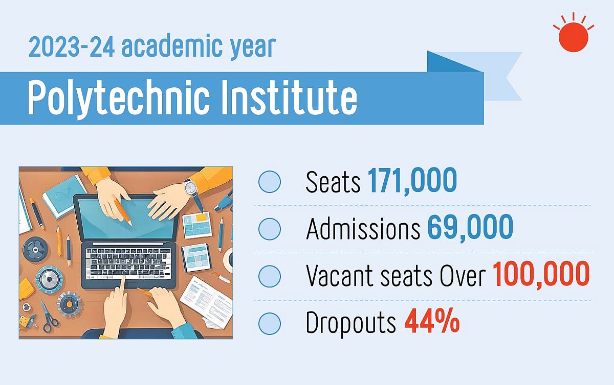 The country’s technical education sector is not attracting as many students as it should. There are more than 171,000 vacant seats for Diploma-in-Engineering in public and private polytechnic institutes across the country. However, in the 2023–24 academic year, only 69,000 students enrolled, leaving over 100,000 seats vacant. Most of these empty seats are in private institutions, though government institutes also have vacancies.
