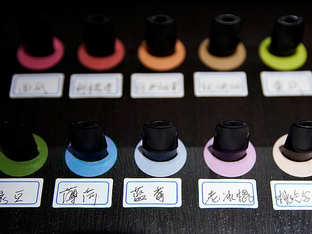 In a glass-walled laboratory, chemists puff on vaping devices as they test liquid nicotine flavors. Nearby, staffers with cartons of instant noodles on their desks tap away at laptops, messaging suppliers and customers.